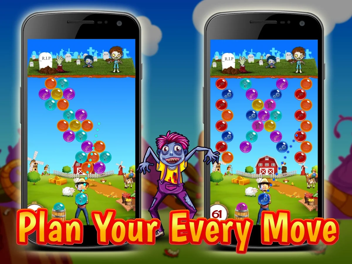 Remember, your farm provides food to the whole village and is being attacked by zombies. The more levels you’ll pass more chances he will get to supply the food into the village to feed its inhabitants. No plants, fruits, candies, no mania – just pure fun puzzles, awesome graphics, lossless audio, and the creepiest zombies around. Play this bubble shooter, master the game inside out, and get hooked in this top notch World War Z like adventure.